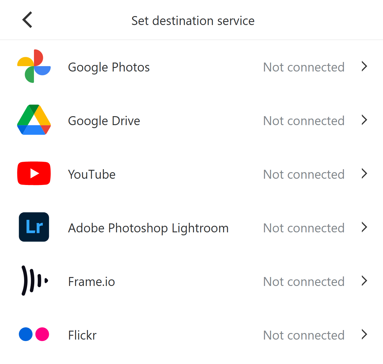 Automatically forward images to Google Photos, Google Drive, Adobe Lightroom, and Frame.io. Image information used for sorting will be available at the destination.