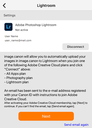 If you are not currently subscribed to an eligible plan, you will receive an Adobe plan subscription notification email to your Canon ID email address.