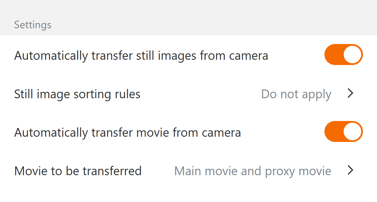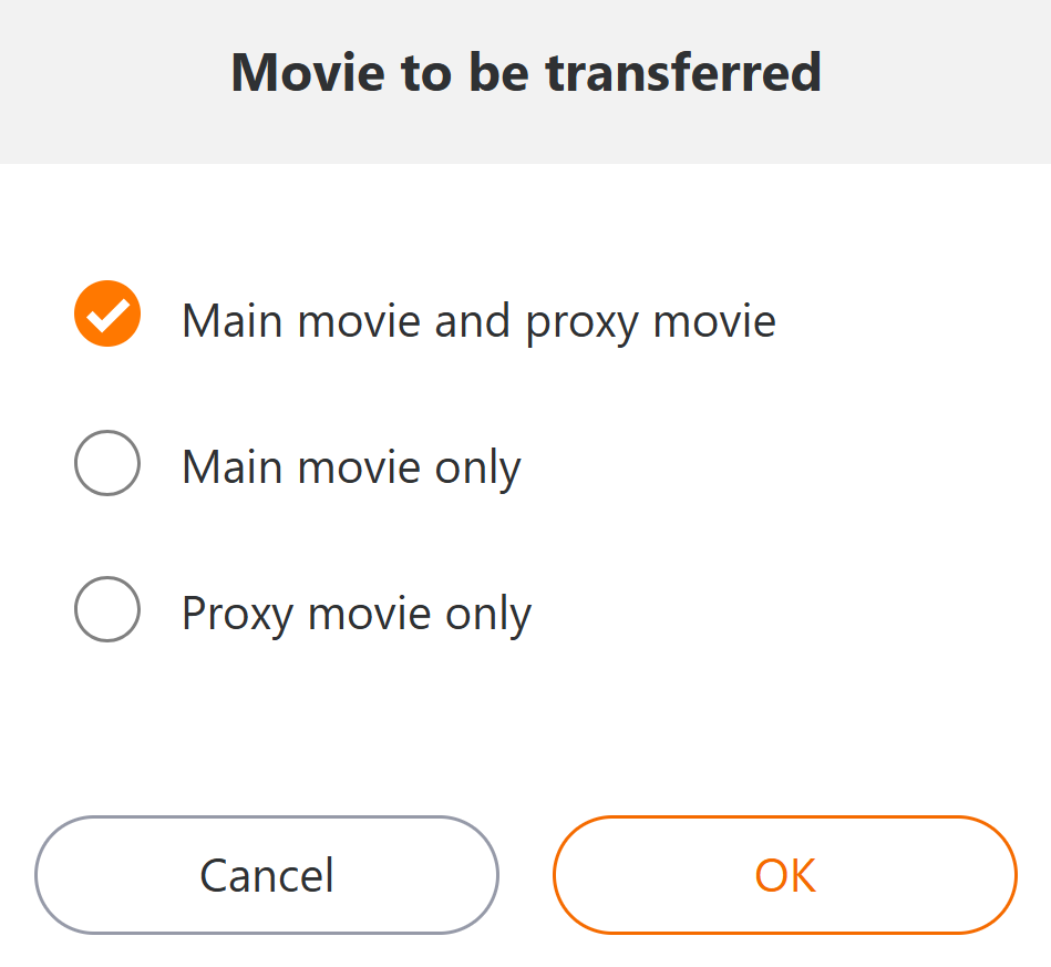Select whether to transfer the main video or proxy video when the video file is uploaded. Only models that support proxy videos can upload.
