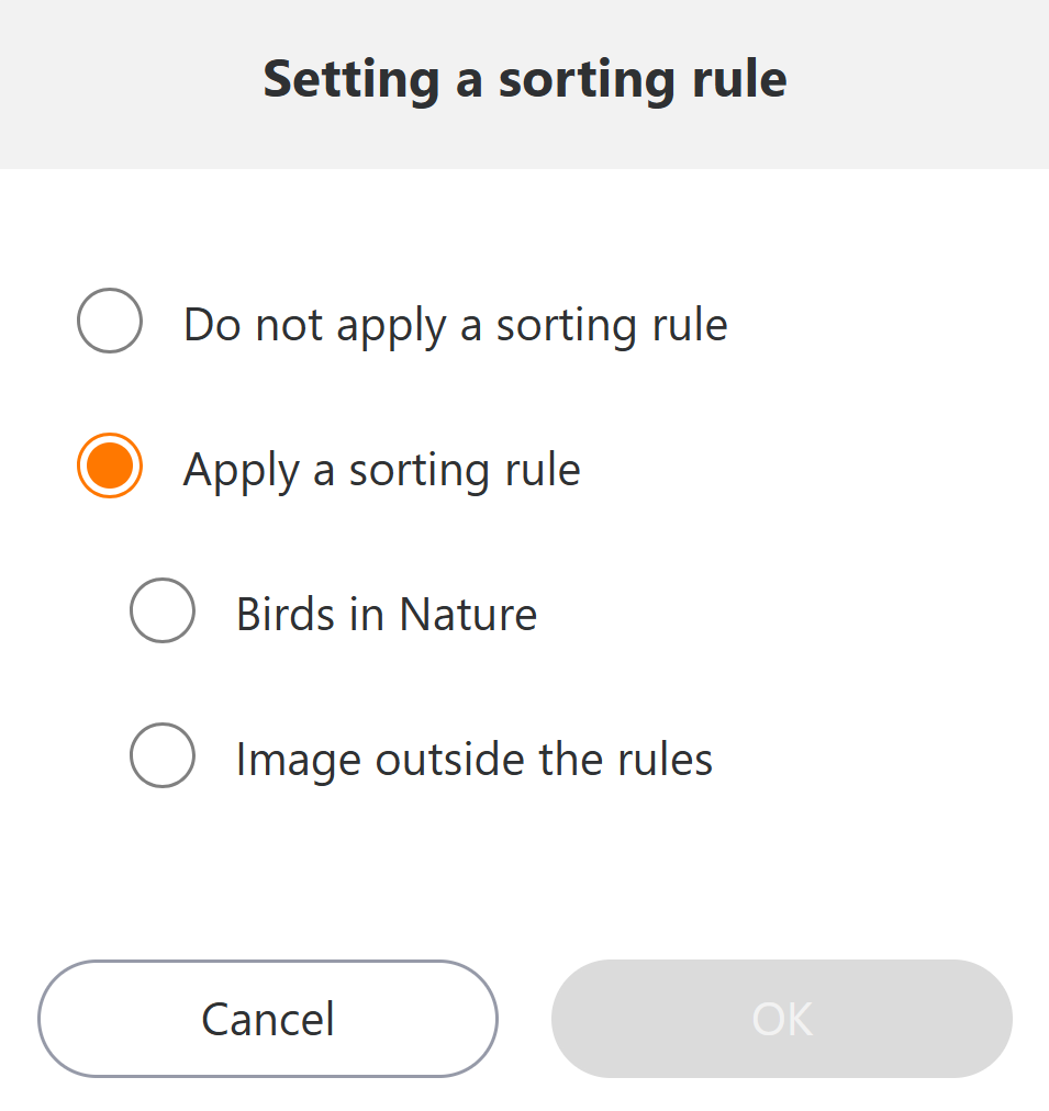 No folders will be created. Images that match the specified sorting rules will be transferred.